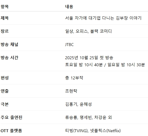 류승룡과 명세빈이 주연을 맡은 이 드라마는, 제목만큼이나 현실을 날카롭게 풍자하며 직장인들의 공감을 자아냅니다. 실제로 많은 이들이 “내 얘기 같다”는 반응을 보이고 있는데요. 이번 글에서는 OTT 시청 방법, 주요 배우들, 줄거리 요약, 그리고 4화까지의 시청 후기와 앞으로의 관전 포인트까지 한눈에 정리해봤습니다.