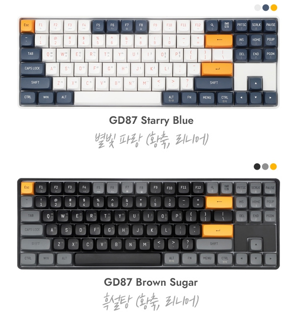 가성비 기계식 유뮤선 텐키리스 저소음 황축 키보드 다크플래쉬 GD87