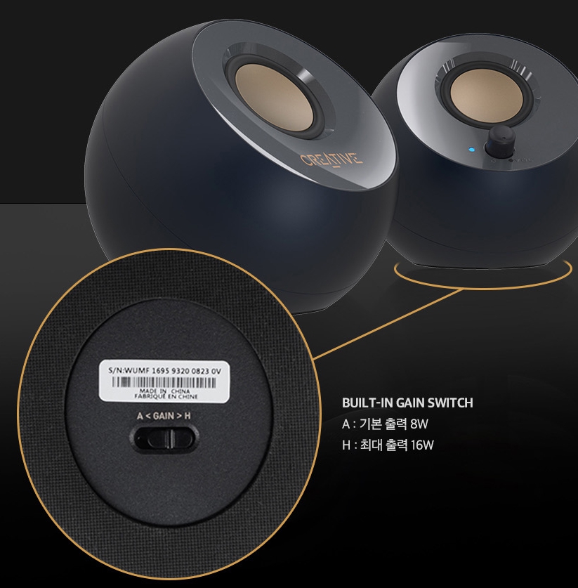 가장 기본형 모델로 2만 원대의 가격에 구매가 가능해서 접근성이 가장 좋으며 2인치 유닛에 최대 8.8W 출력과 USB단자를 통해서 전원을 공급받으며 3.5mm 단자를 통해서 소리를 전달합니다. 후면에 패시브 라디에이터를 통해서 마치 우퍼를 단것처럼 중저음의 깊이감을 표현하는 점이 특징이며 45도로 기울어져있어서 책상에 올려놨을 때 사용자의 귀로 소리를 전달해서 명확한 소리를 들려줍니다.