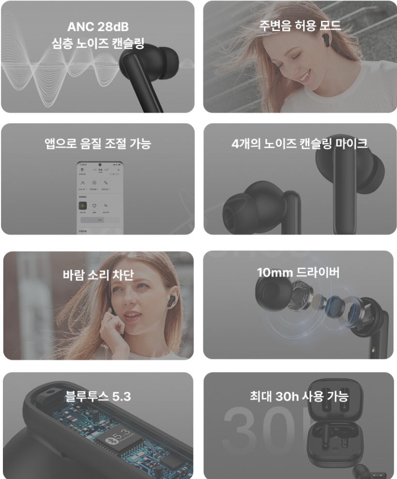 노이즈 캔슬링 기능이 빠진 기본적인 모델이기 때문에 운동이나 여분용의 가벼운 사용환경에서는 기본기가 충실한 제품입니다. 음악을 재생하는 다이내믹 드라이버크기가 살짝 줄어들었지만 소재등을 업그레이드해서 음질적인 부분에서는 T13 ANC 보다 살짝 우위에 있으며 저가형에서 보여주는 깡통형 소리가 아닌 선명하고 깔끔한 음질을 보여줍니다.