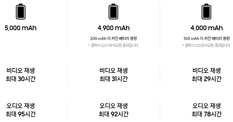 256GB를 512GB로 무료로 업그레이드해 주며 갤럭시 S24울트라는 256GB를 516GB로 512GB를 1TB로 무상으로 업그레이드해 줘서 SD카드가 추가가 안 돼서 오래 사용하고 사진등이 많이 싸이게 되었을 때 저장공간이 부족했던 부분들을 말끔하게 해소시켜 주는 아주 좋은 혜택입니다. 최소 14만 원에서 28만 원 정도의 가격할인이 적용되어서 금액적으로도 매력적입니다.