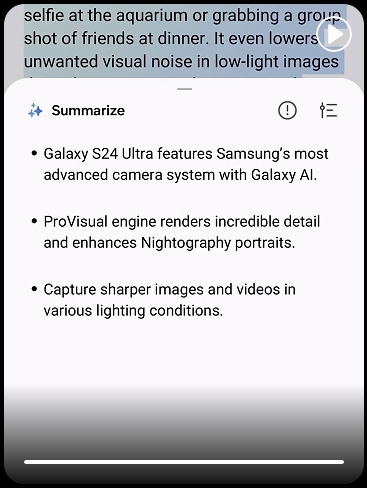 Circle to Search라는 새로운 기능은 이번에 언팩 행사에서 가장 주목받는 기능이었는데 예를 들면 사진 속의 인물의 가방이 있는 부분을 문지르면 구글을 기반으로 한 검색으로 그 가방의 모델과 판매 가격등이 검색되는 기능으로 삼성이 처음 선보이는 기술은 아니지만 완성도를 많이 높였다는 평가가 있어서 실생활에서 쇼핑등을 하기 위해서 검색할 때 활용도가 아주 높은 부분입니다.