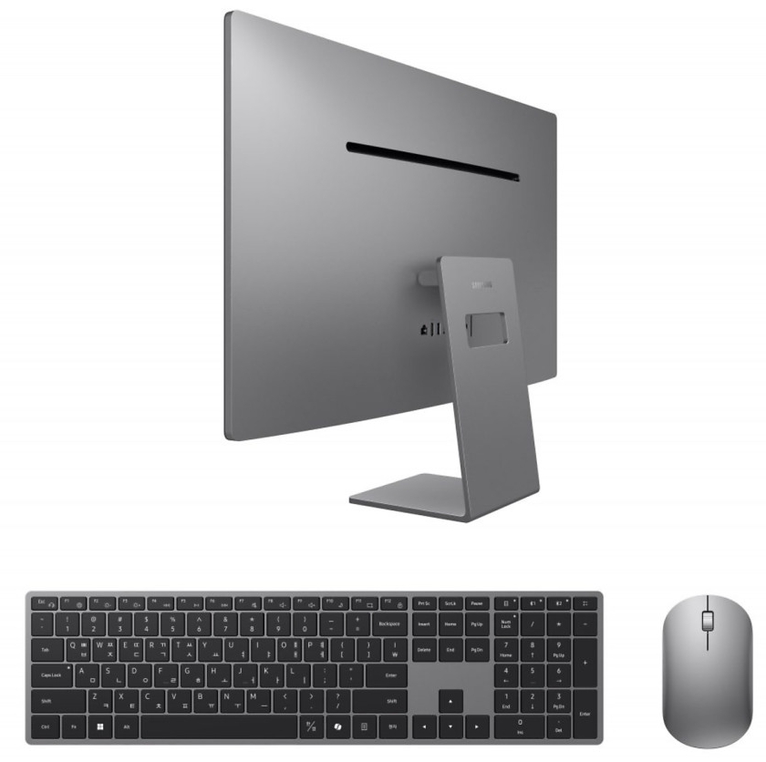두께가 정말 얇고 6.9Kg 가벼운 무게는 본체와 모니터를 옮길 필요 없이 모니터하나 옮기는 정도의 수고라면 간편하게 이동이 가능한 점이 장점입니다. 27인치의 디스플레이는 작지도 크지도 않은 적당한 사이즈를 보여 주고 있어서 심플한 데스크인테리어를 추구하시는 분들에게 안성맞춤입니다. 함께 구성된 키보드와 마우스도 본체와 같은 어두운 회색을 채택하여서 통일감을 주어서 완성도를 높이고 있습니다.
