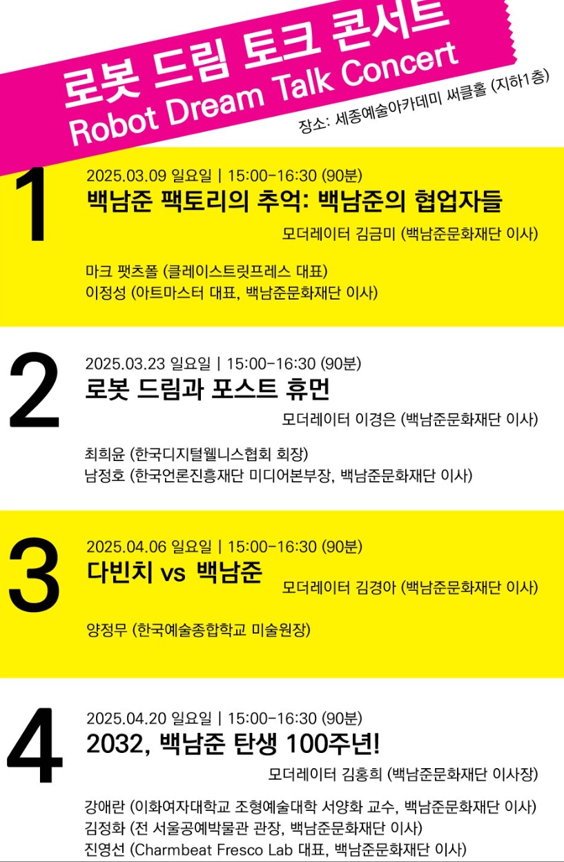 네이버 예약 :: 로봇드림 백남준의 팩토리 아카이브 전시해설 및 토크콘서트 예약 (무료)