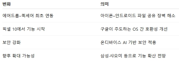 에어드롭과 퀵셰어가 손잡다…픽셀 10부터 지원