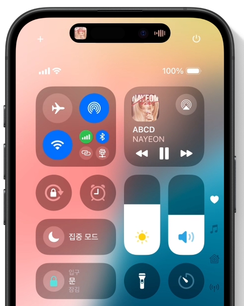홈화면에서 아래로 한 번의 연속 스와이프를 통해서 들어갈 수 있는 제어 센터에 새로운 제어기능을 추가하거나 크기를 변경하고 순서를 변경할 수 있습니다.