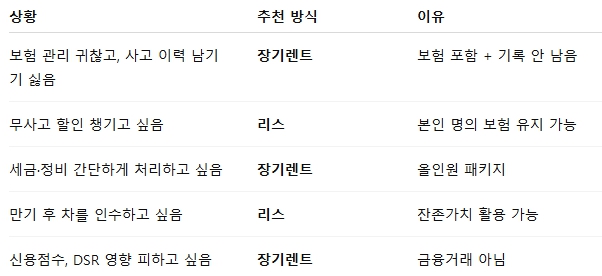 보험이나 신용관리까지 직접 하고 싶다면 리스를 선택하세요!