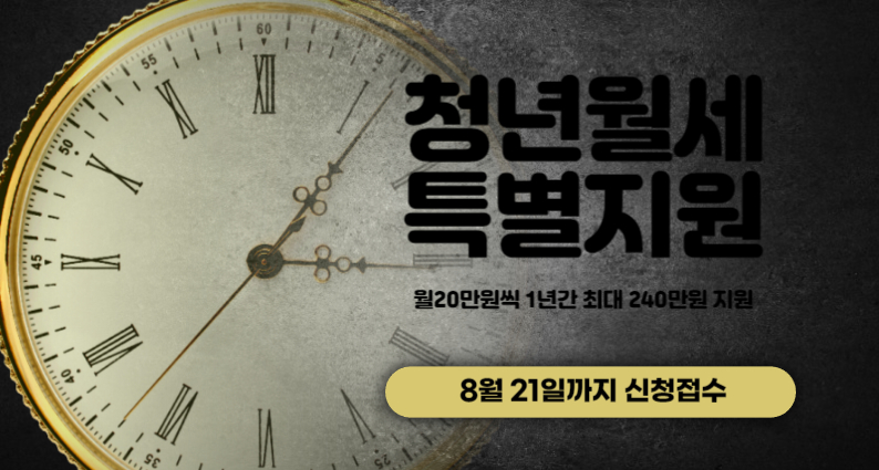 국토교통부에서 소득조건과 무주택인 청년이라면 월세를 최대 20만 원씩 12개월간 240만 원 한도로 '청년월세특별지원금'을 청년들에게 지원하고 있습니다. 기간한정으로 8월 21일까지 신청해야 혜택을 받을 수 있어서 최대한 빨리 알아보시고 신청하는 것이 좋습니다.