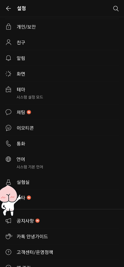 - 설정 메뉴에서 하단으로 내리다 보면 보이는 실험실로 들어가 줍니다.