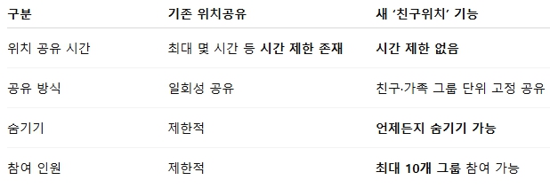 - 시간 제한이 없어진 만큼, 필요할 때만 위치 공유를 켜는 게 안전합니다. 오랜 시간 계속 켜두기보다는 단기간만 공유하는 편이 실용적입니다.