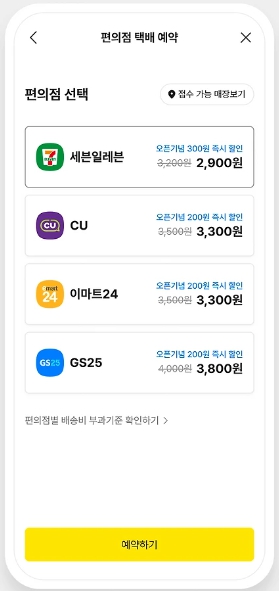 4. '편의점 택배' 선택하기 : 여러 예약 옵션 중에서 '편의점 택배'를 선택합니다.