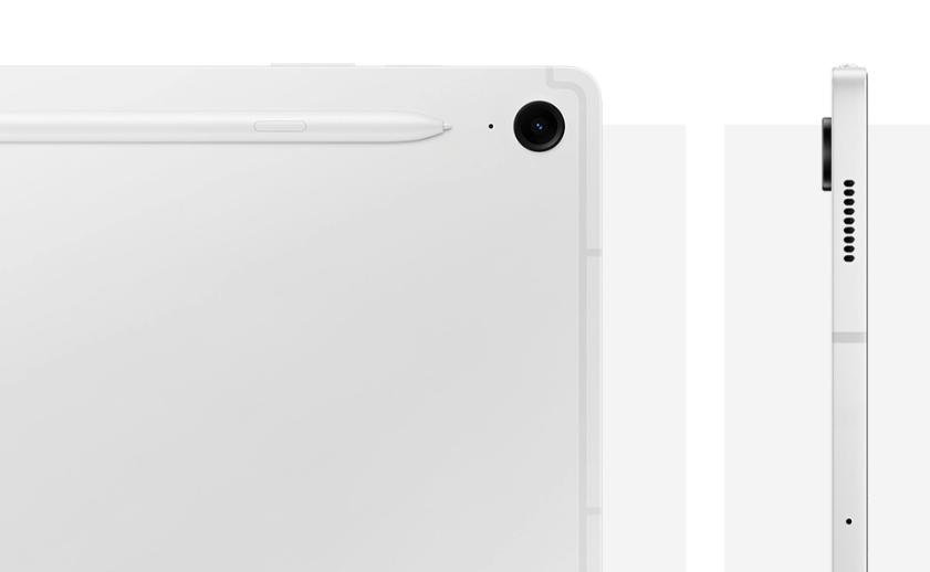 기본적인 디자인은 갤럭시탭 S9 기본형 모델과 거의 비슷한 디자인을 하고 있으며 후면 카메라 아래에 플래시가 빠지고 S펜을 부착할 수 있는 공간이 제거된 점을 빼면 큰 차이가 없습니다. 100만 원대에 팔리고 있는 갤럭시탭 S9과 외관에서는 거의 차이가 없다는 점은 장점으로 다가올 수 있습니다.