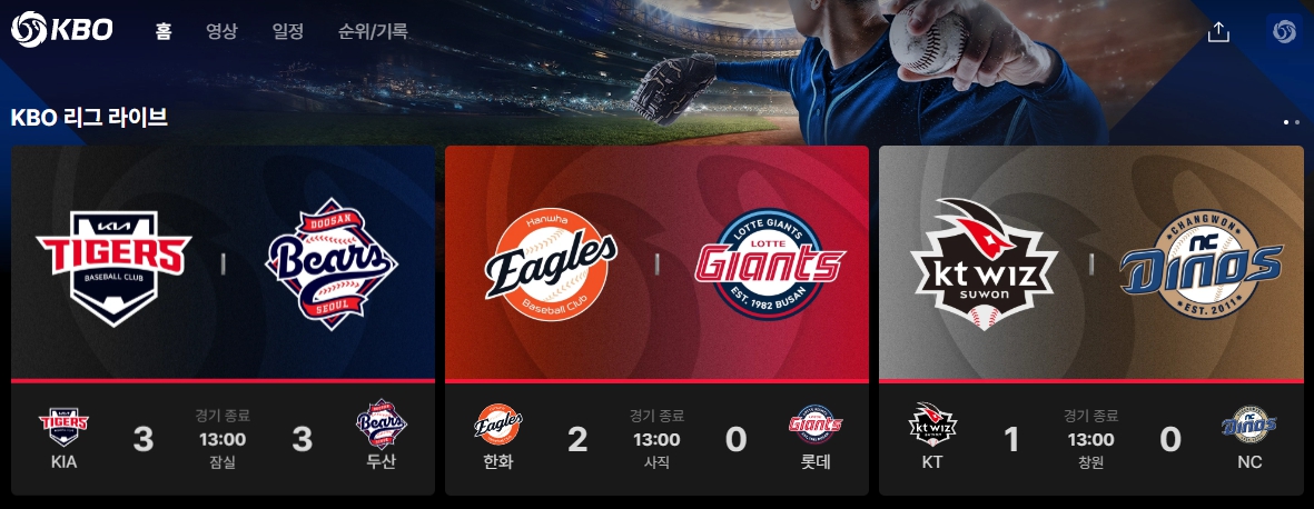 티빙 KBO 페이지에서 경기 순위와 경기 일정 등을 손쉽게 확인할 수 있습니다.