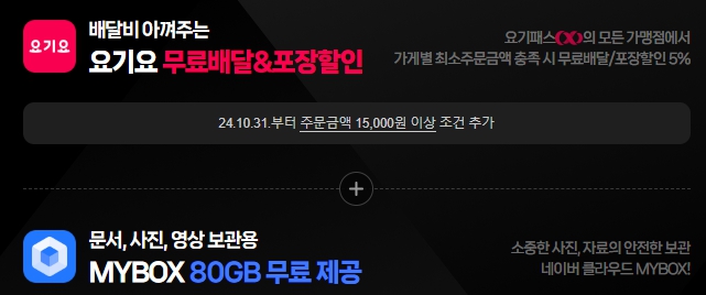 요기요를 통해서 주문하면 무료배달과 포장할인 혜택을 받을 수 있고 중요한 사진이나 영상을 클라우드 서버에 저장할 수 있는 공간 80GB를 무료로 제공하고 있습니다.