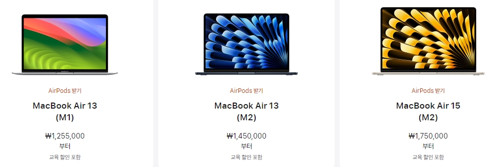 이번에 새로 출시한 맥북 M3도 할인에 포함되어서 새로운 노트북을 구매하신다면 프리미엄 라인인 M3를 구입하시는 것을 추천드립니다,