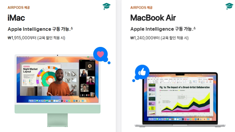 대학생들에게 가장 인기 있는 맥북 프로 모델은 224만 원 아이패드 에어 모델은 82만 원으로 최저가보다 10% 정도 싸게 구매가 가능합니다.
