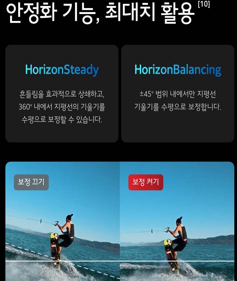 손떨림 방지 기능이 업그레이드되어서 흔들림을 상쇄하고 자동으로 기울기를 보정하여서 초보자가 촬영하여도 수평을 보정하여서 완벽에 가까운 결과물을 만들어 냅니다.