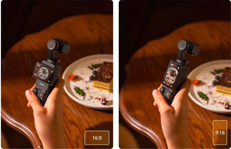 요즘 대세인 숏폼이나 릴스 등을 촬영하실 때 세로로 촬영해야 하는 분들이 많은데 오즈모 포켓 3은 2인치의 화면이 가로와 세로로 변경이 가능하여서 직관적으로 찍는 분들이 확인이 가능하여서 영상을 처음 찍는 초보자 분들이나 다양한 환경에서의 활용성과 편의성에서 엄청난 이점이 있습니다. 야외 촬영 시 700 니트의 밝기를 가진 2인치의 OLED 화면은 야외촬영 시에 화면 확인하는데 이점이 됩니다.