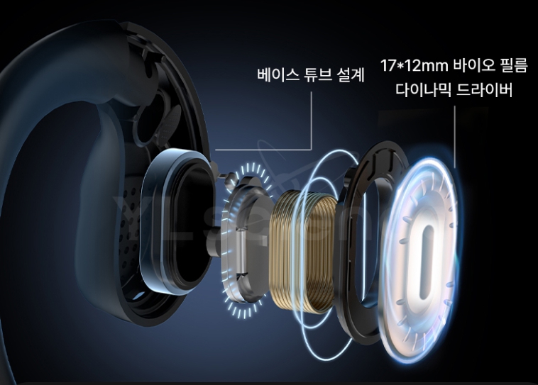 오픈형 이어폰의 단점인 소리가 잘 들리지 않는 단점은 트랙형 바이오필름 베이스튜브 17mm의 기존의 이어폰들과 다르게 큰 드라이버를 사용해서 풍성한 베이스와 귀방향으로 소리가 잘 전잘 될 수 있는 지향성을 가진 튜닝을 통해서 더욱 선명하고 웅장한 베이스 사운드를 들려줍니다.