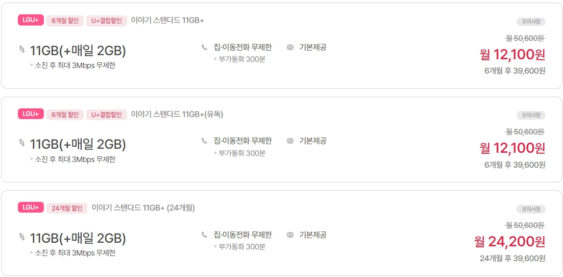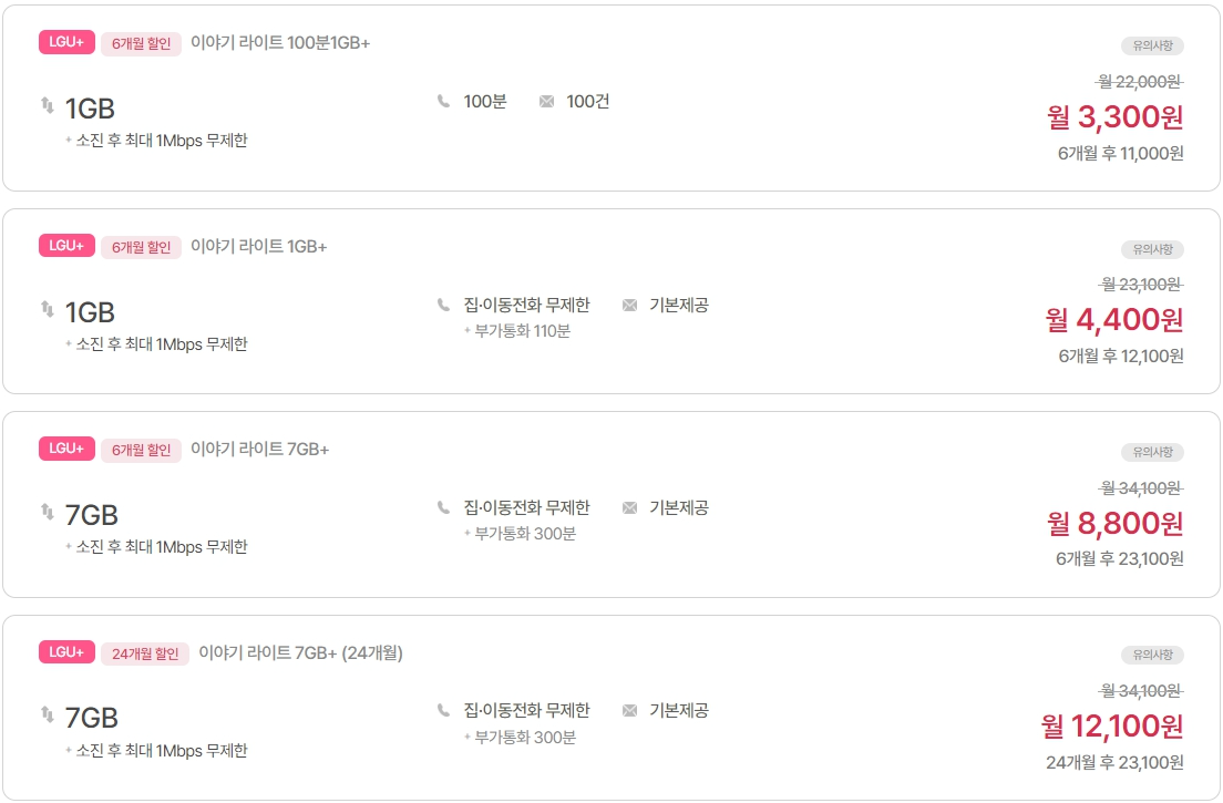 몇 개월 동안 프로모션 식으로 저렴하게 제공하는 서비스이기 때문에 잘 확인하셔서 가입하시면 됩니다. 그리고 통화시간과 데이터 사용 동시에 필요하시다면 아래에 요금제를 추천합니다.